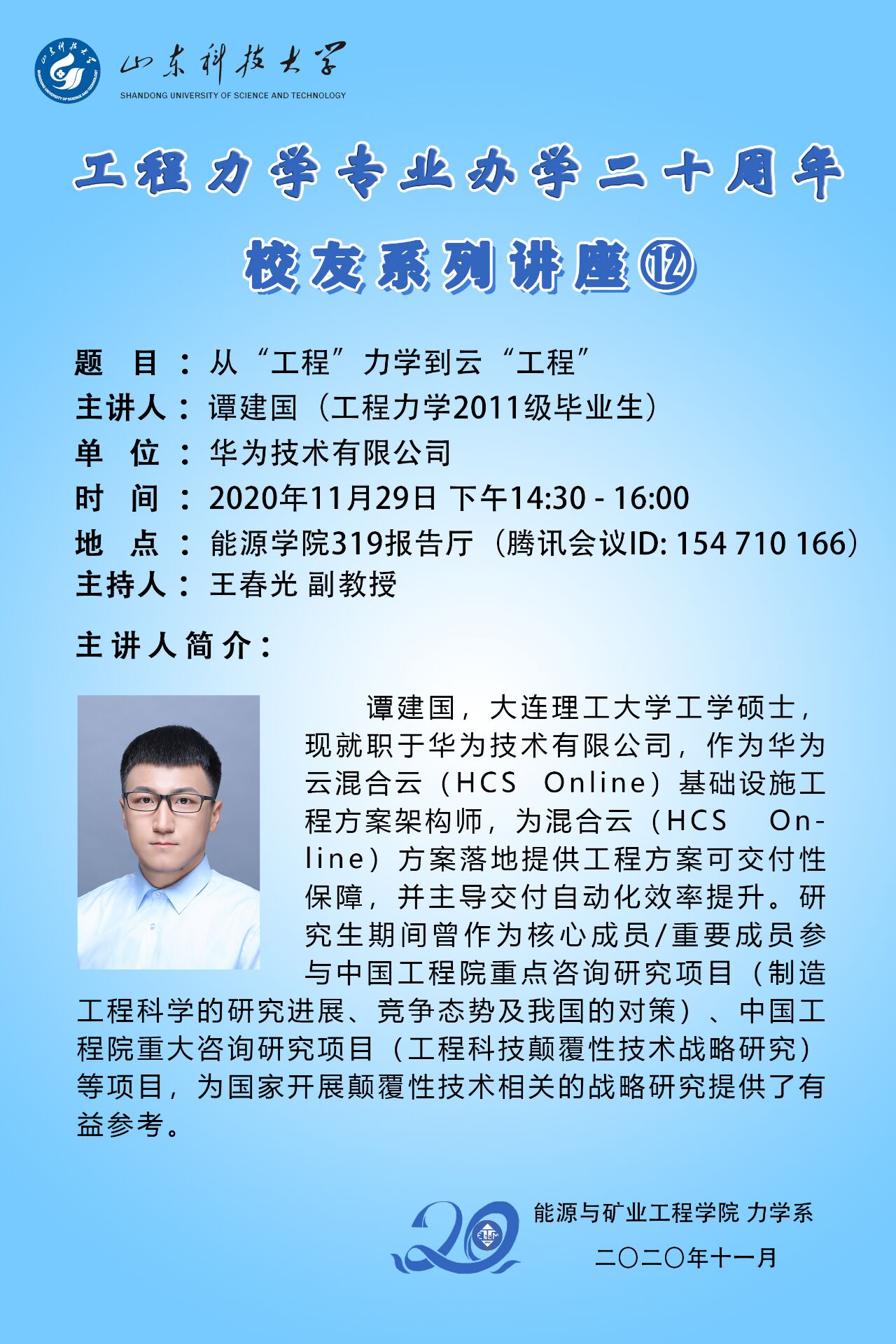 工程力学专业办学二十周年校友系列讲座12--从“工程”力学到云“工程”